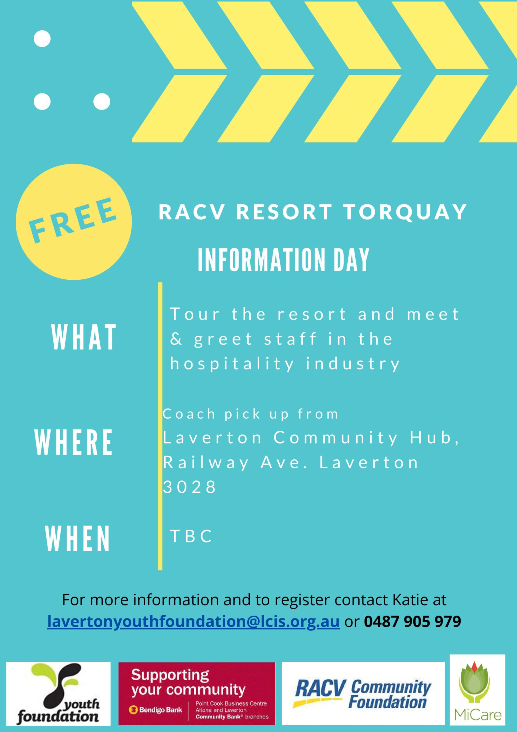 Laverton Youth Foundation has teamed up with the RACV Community Foundation to offer young people aged 14 – 25 the amazing opportunity to visit an RACV site (such as Torquay or Goldfields). These site visits take place every school holiday (suspended until current restrictions are eased)